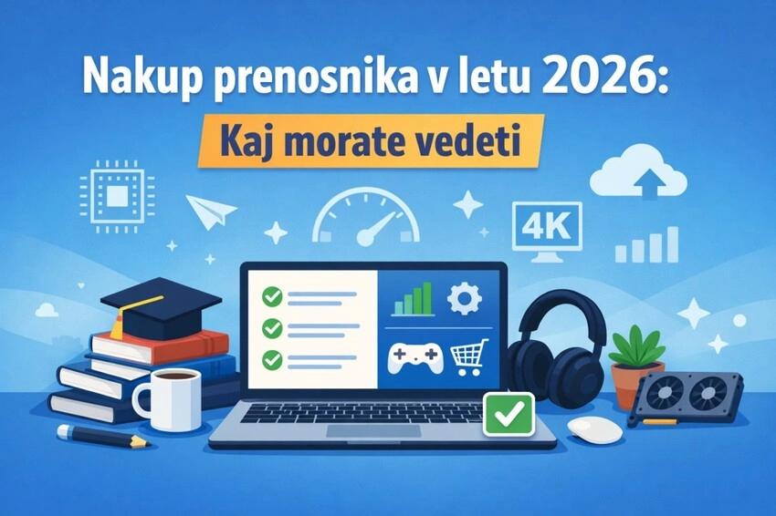Nakup prenosnika v letu 2026 ni več tako preprost, kot je bil pred nekaj leti. Na voljo je ogromno različnih modelov, procesorjev, grafičnih kartic, zaslonov in operacijskih sistemov, zato se kupci pogosto znajdejo pred težko odločitvijo, kateri prenosnik je pravi za njihove potrebe. Poleg klasične uporabe za šolo, delo in domačo rabo so danes vse bolj pomembne tudi zmogljivosti za večopravilnost, video klice, ustvarjanje vsebin in celo uporabo umetne inteligence v vsakdanjih programih.